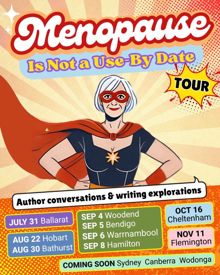 Melbourne writer Trish Bolton and I, alongside an incredible crew of women authors, will host lively discussions and writing explorations that push back against dated stereotypes and celebrate the older woman!